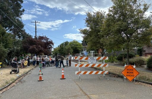 シアトル市では、このようなブロック・パーティが行えるように、道路の封鎖をオンラインで申請することができます(参加者100人以下で1ブロック以内の閉鎖、幹線道路でないことといった制限があります)。日本でも、気軽に近隣のパーティを「持ち寄り」で行う習慣が流行ったら楽しそうですね。